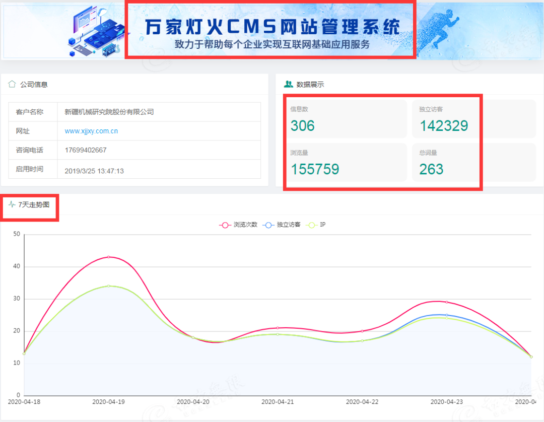 此次“萬家燈火CMS系統(tǒng)”的升級版,1. 在原有的基礎上,增加網站關鍵詞7天走勢圖以及網站關鍵詞在各大主流搜素引擎占比餅狀圖,將數(shù)據(jù)更加精細化,*化。