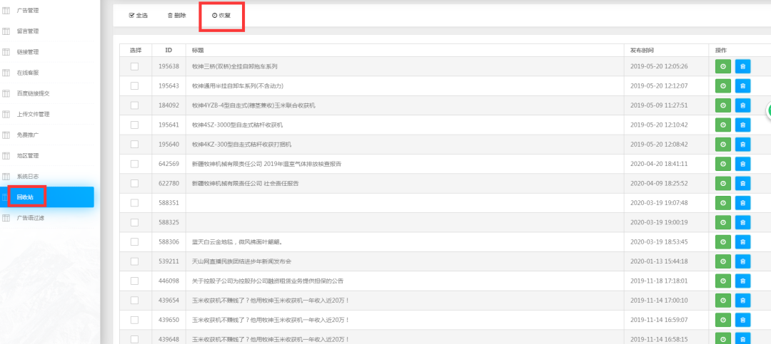信息誤刪,悔不當初?沒關系,萬家燈火CMS系統(tǒng)回收站上線,再也不用擔心信息刪除后找不回來了。